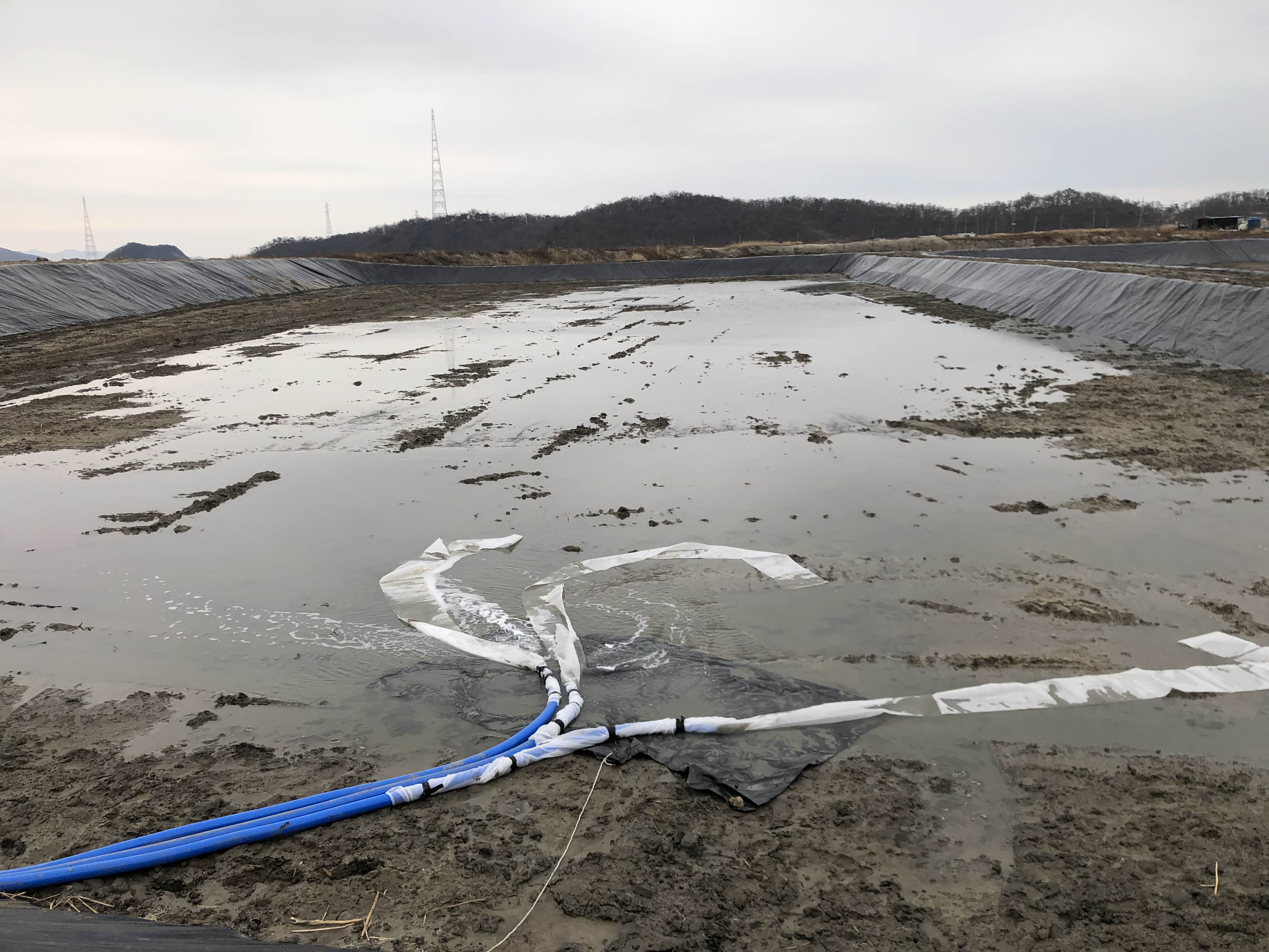 축제식 양식장 물 받기 준비